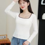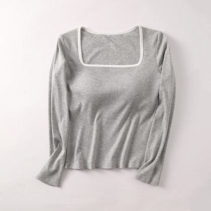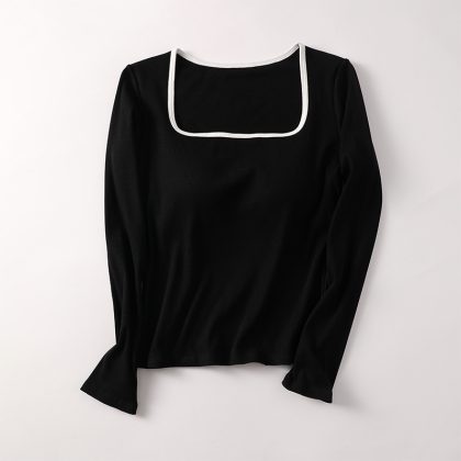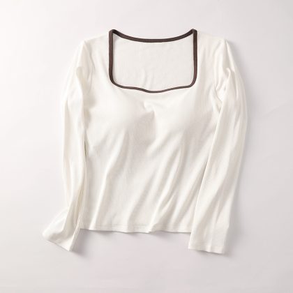 | nameOriginal | New women's all-match contrast color Cup integrated Cup with chest pad slim square collar inner and outer wear bottoming shirt long sleeve |