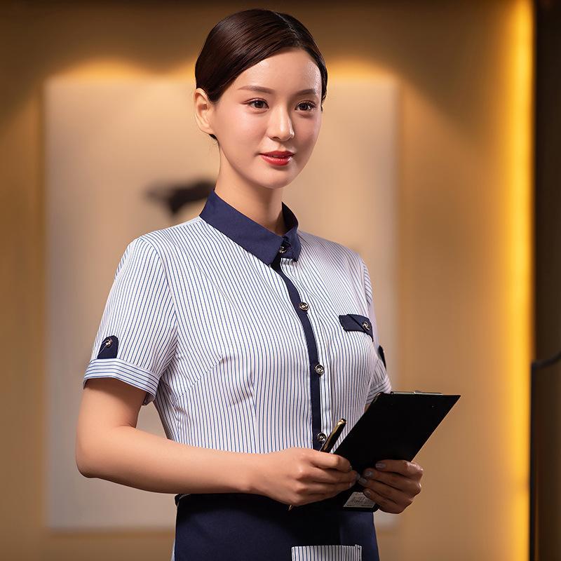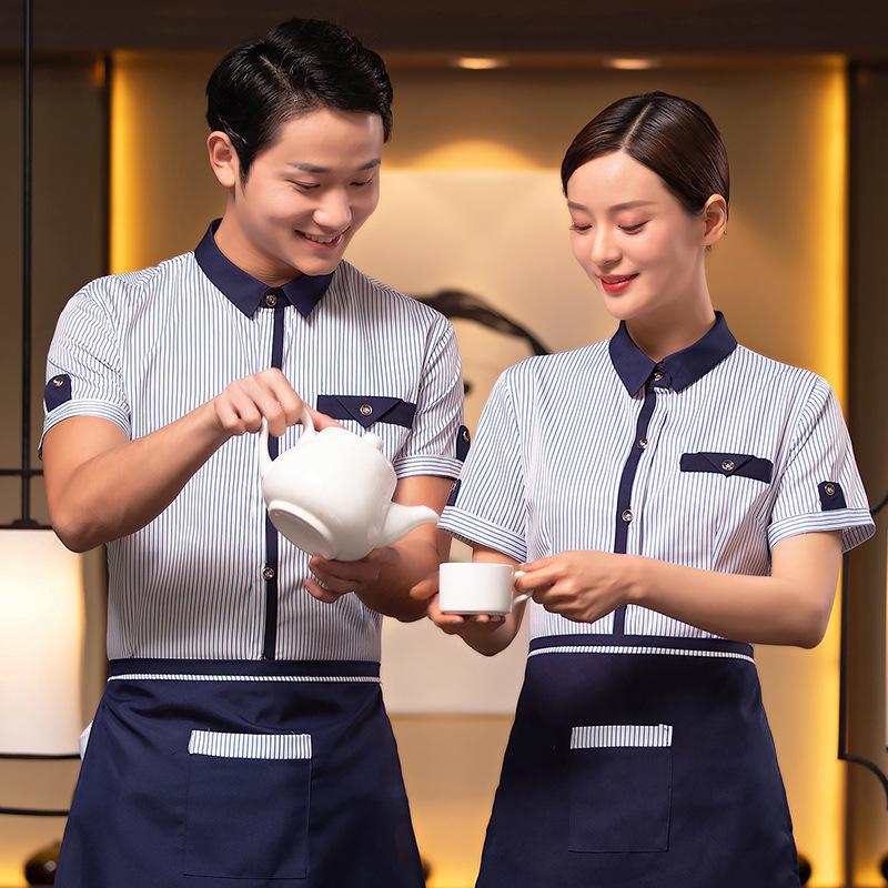 | nameOriginal | New Work Breathable Summer Short-sleeved Ladies Uniform Hotel Western Restaurant Milk Tea Hot Pot String Shop Coffee House Stripes |