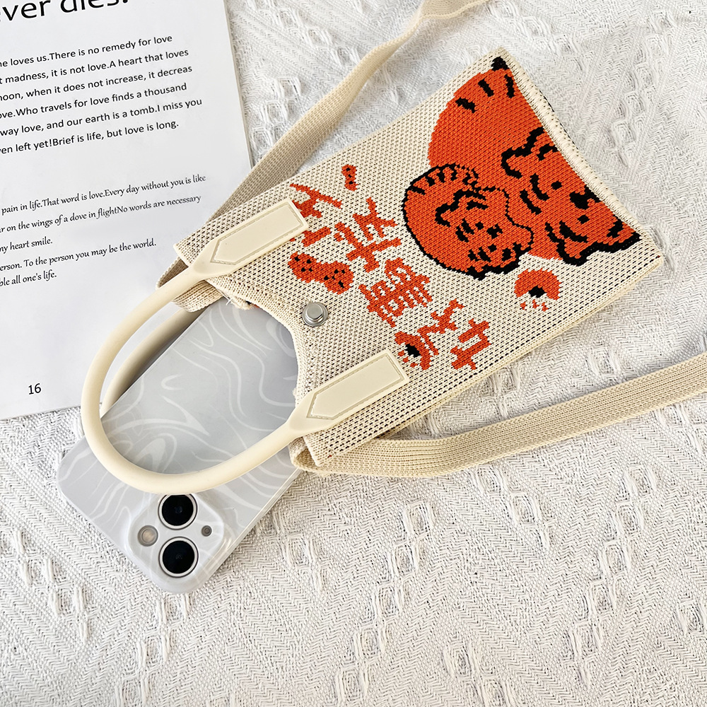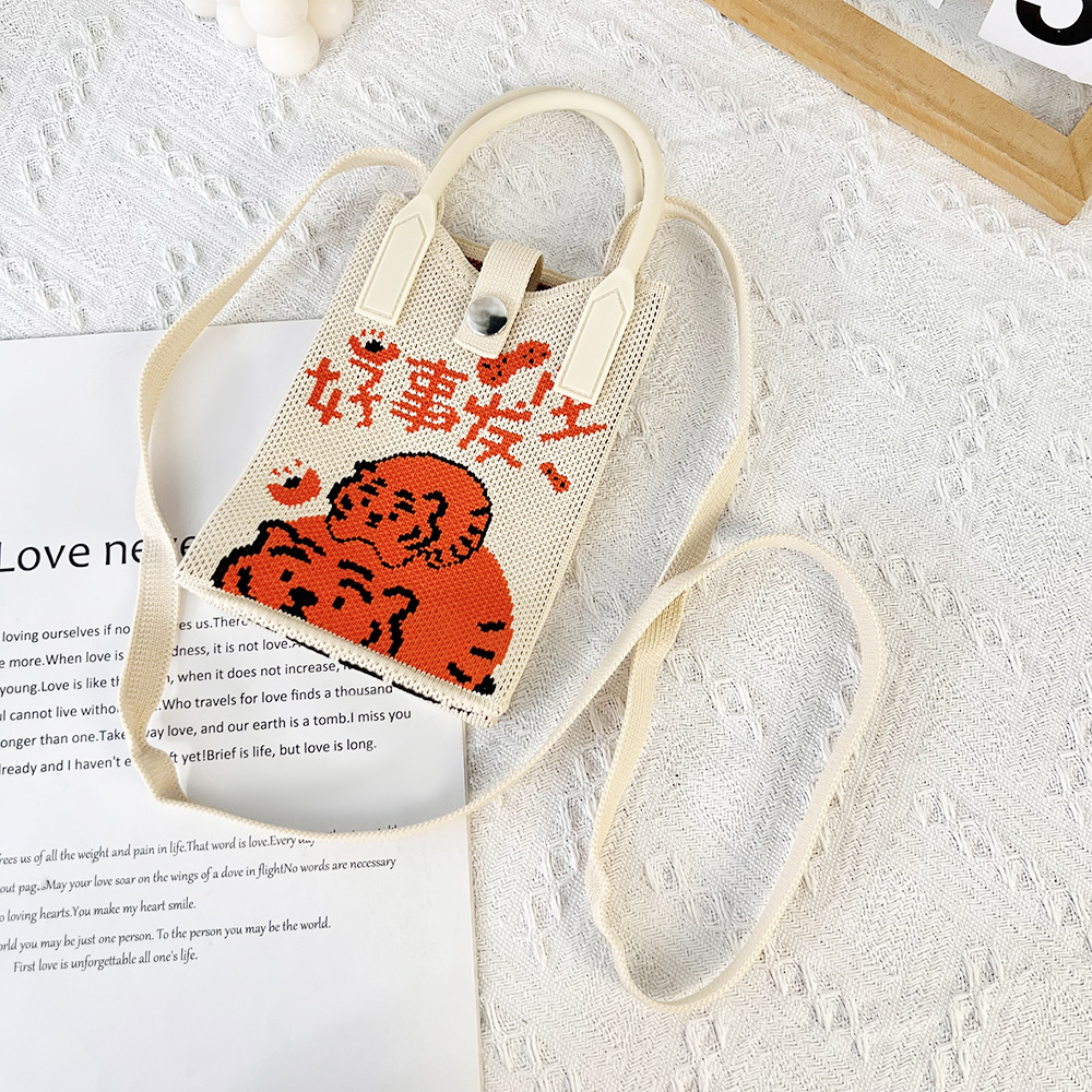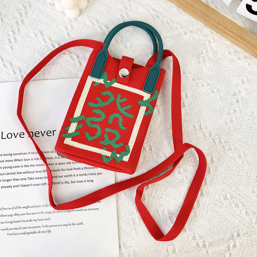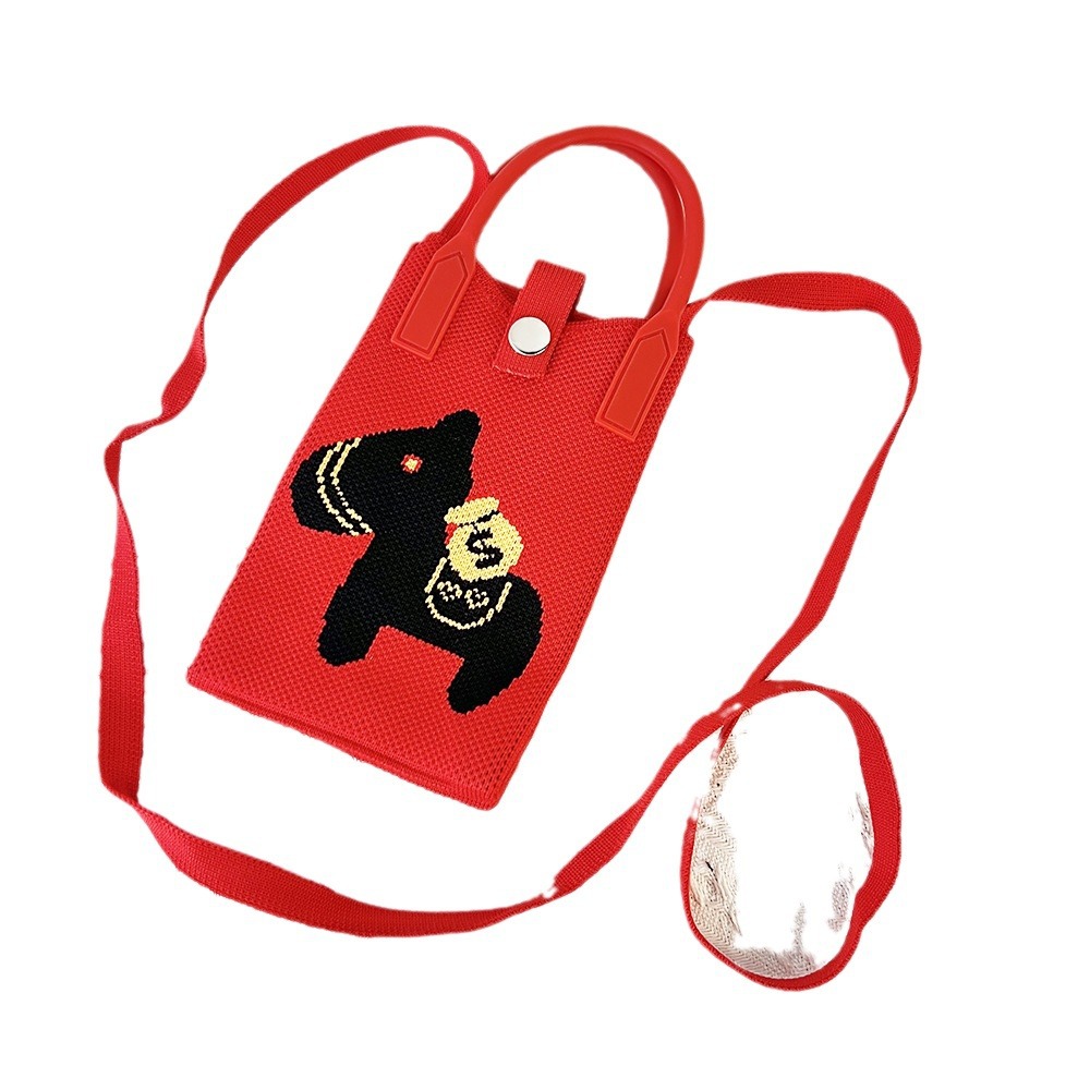 New Year Chinese festive cartoon mobile phone bag chic fortune knitted handbag fashion personalized portable mobile phone bag