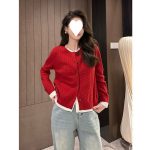| nameOriginal | New Year Red Fake Two-piece Short Design Sense Niche All-match Knitted Cardigan Round Neck Color Matching Base Top |