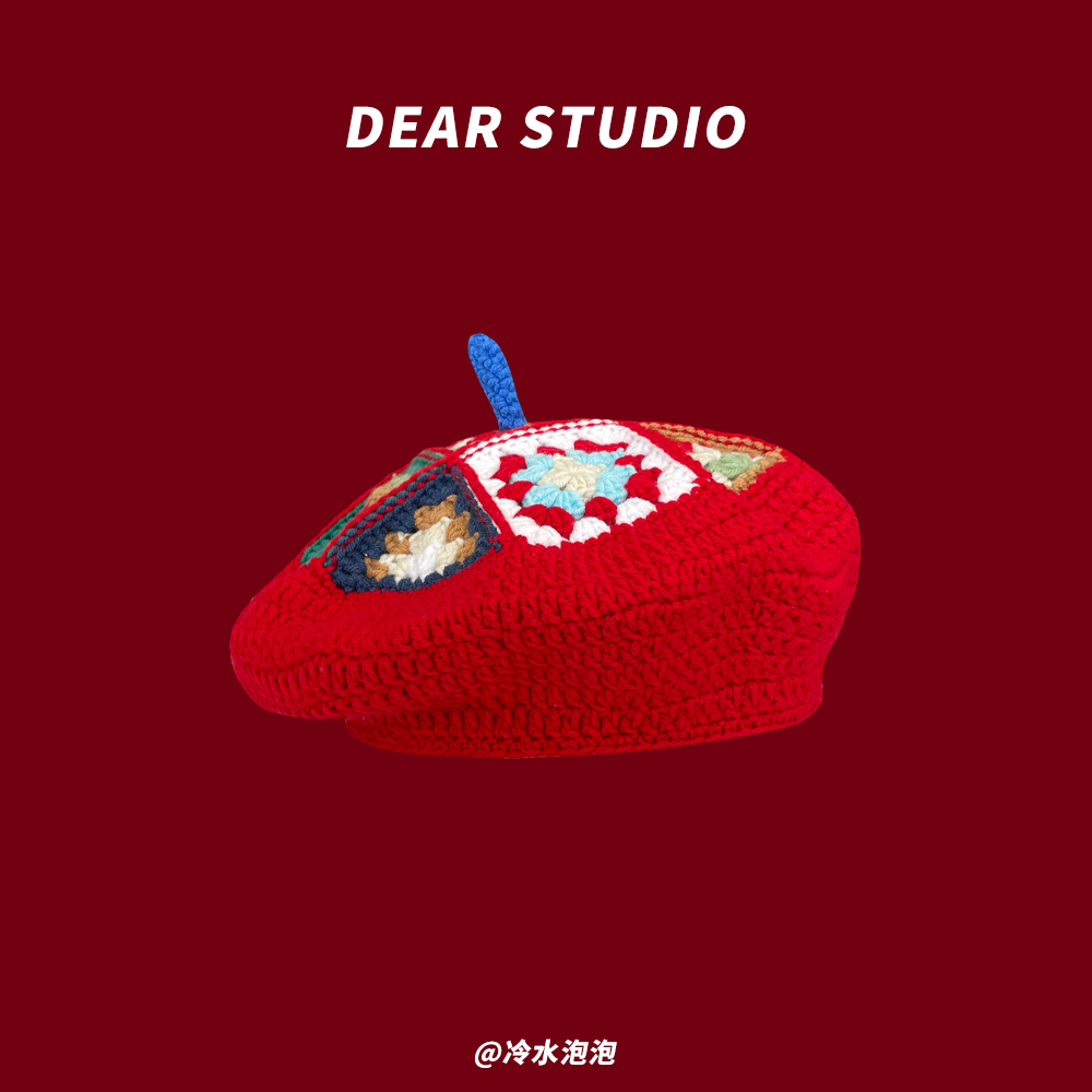 New Year's Christmas gift red woolen beret hat for women in autumn and winter student warm and versatile Internet celebrity painter hat