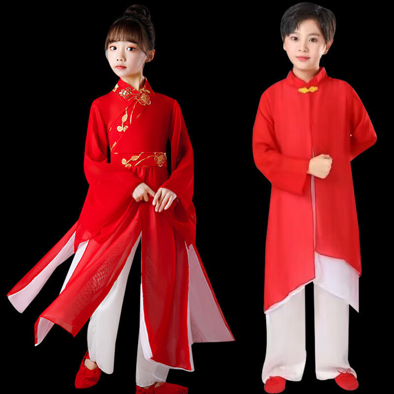 New Year's Day Children's Classical Dance Costume Girls Elegant Mango Fan Dance Yangko Dance Performance Costume Hanfu Red