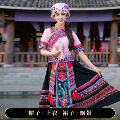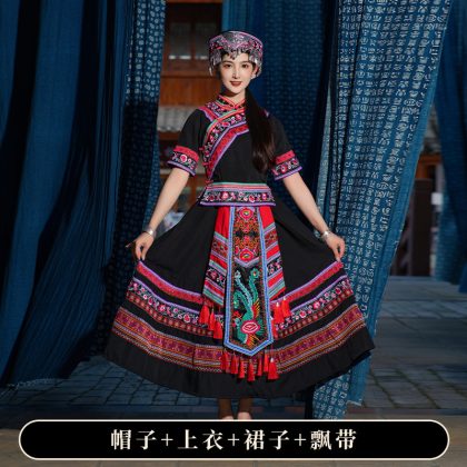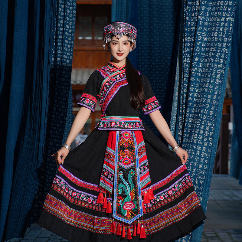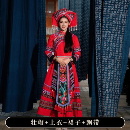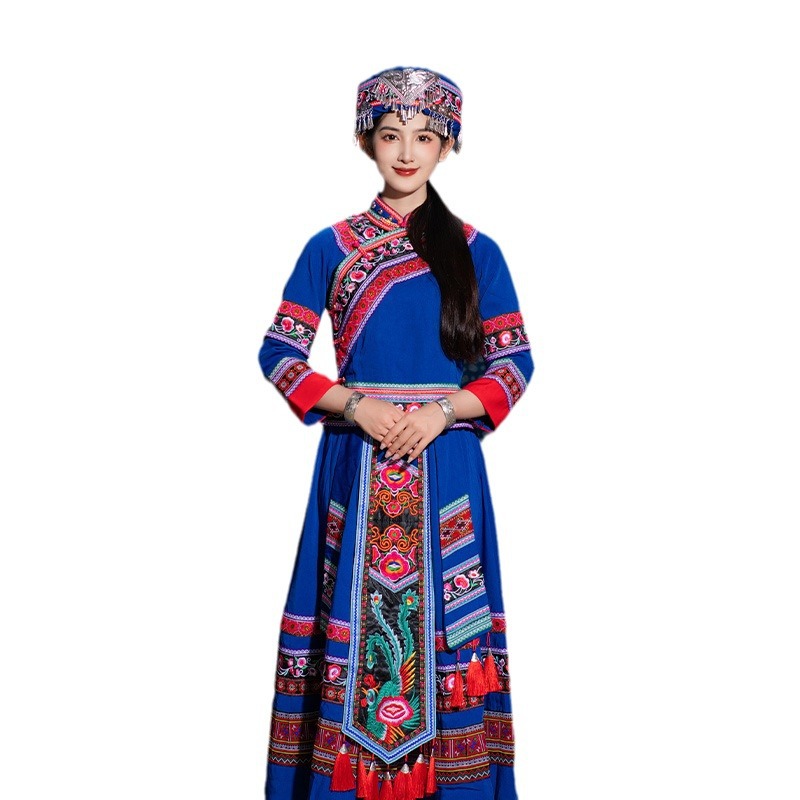 | nameOriginal | New Zhuang costume adult women's ethnic performance costume ethnic minority Zhuang brocade embroidered long dress stage performance costume |