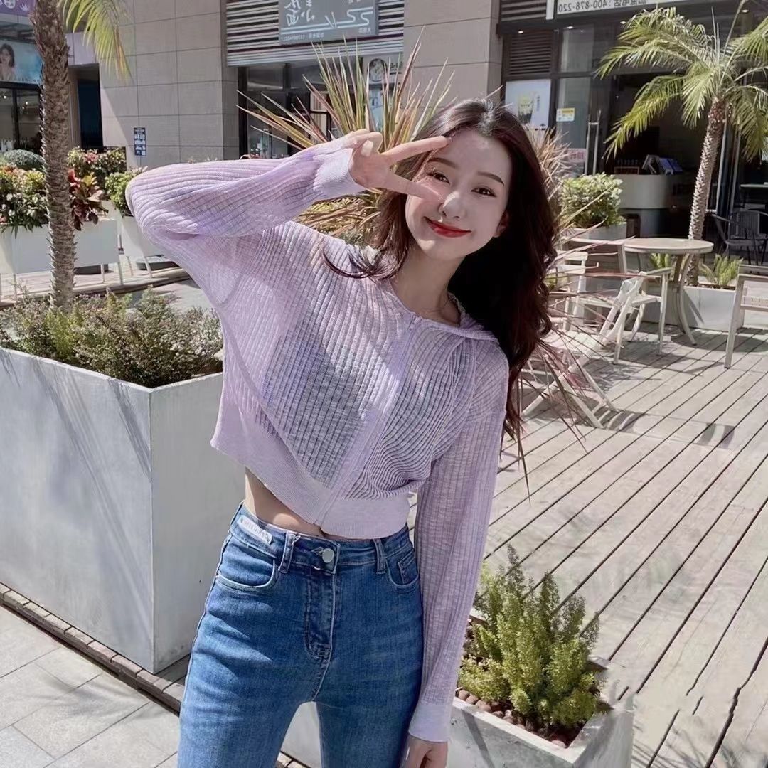 New Zipper Ice Silk Hooded Knitted Sunscreen Clothing Women's Summer Super Fairy All-match Perspective Long-sleeved Cardigan Women's Outer Wear