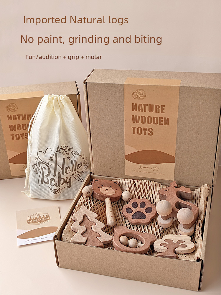 | nameOriginal | Newborn baby natural solid wood suit boxed Beech rattle car toy Bite Teether one hundred days old gift |