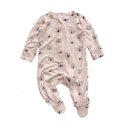 Newborn Bamboo Fiber Footed Zipper Long Sleeve Jumpsuit