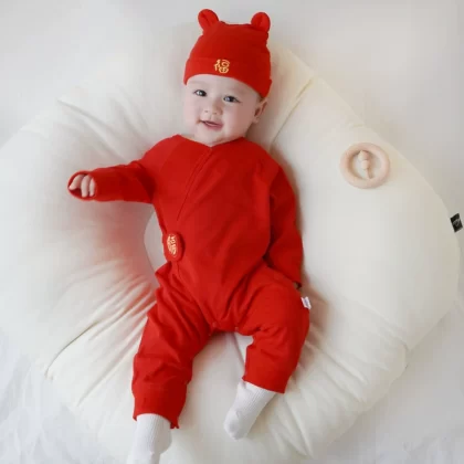 Newborn spring and autumn pure cotton one-year-old big red robe