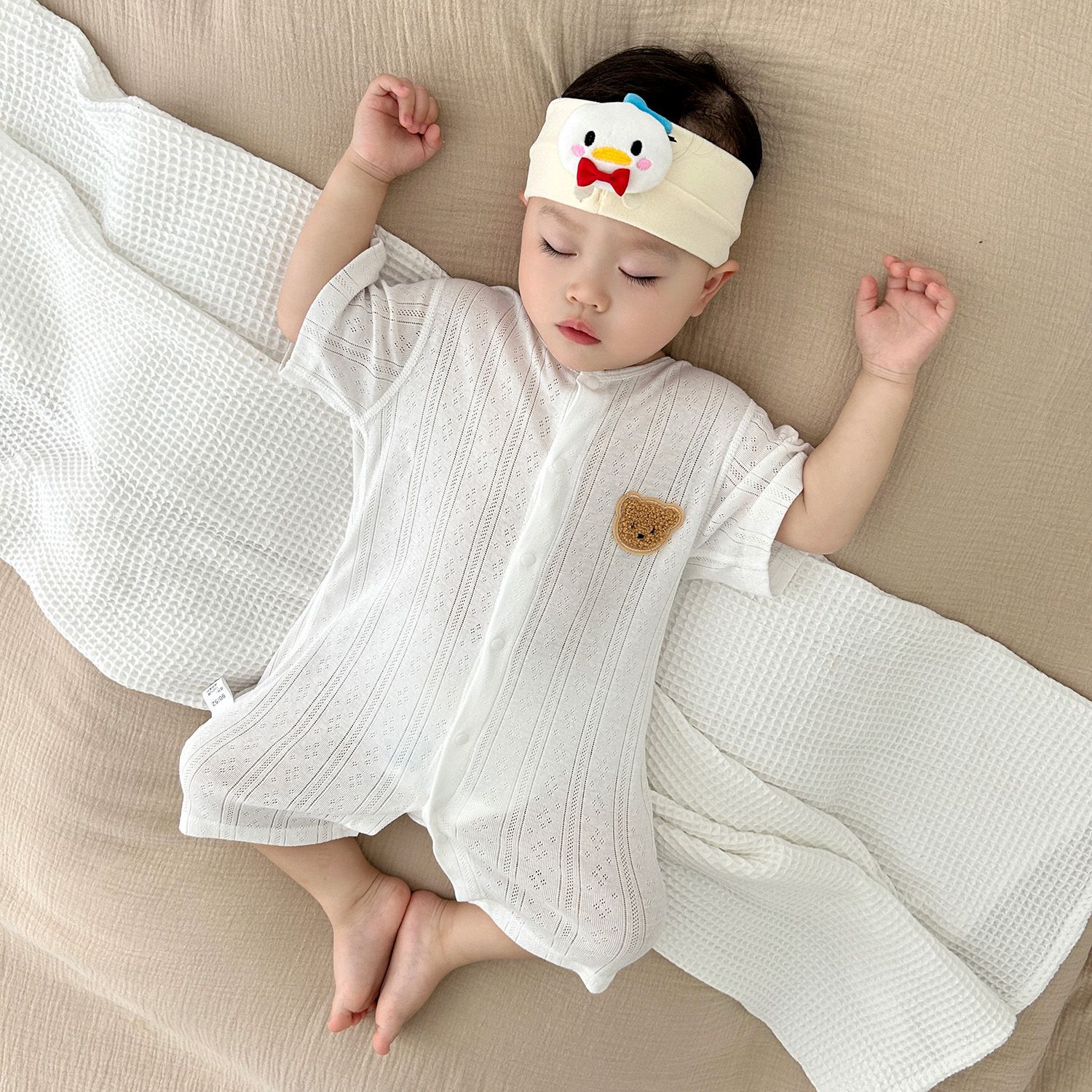 | nameOriginal | Newborn's jumpsuit summer thin short-sleeved baby's jersey cotton climbing suit home pajamas breathable full-open snap |