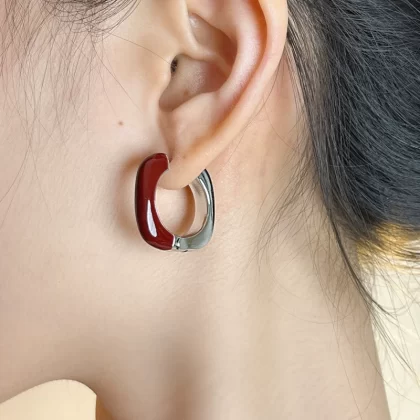 | nameOriginal | Niche design metal black white red enamel stitching silver simple high-end earrings 2023 new style for women |