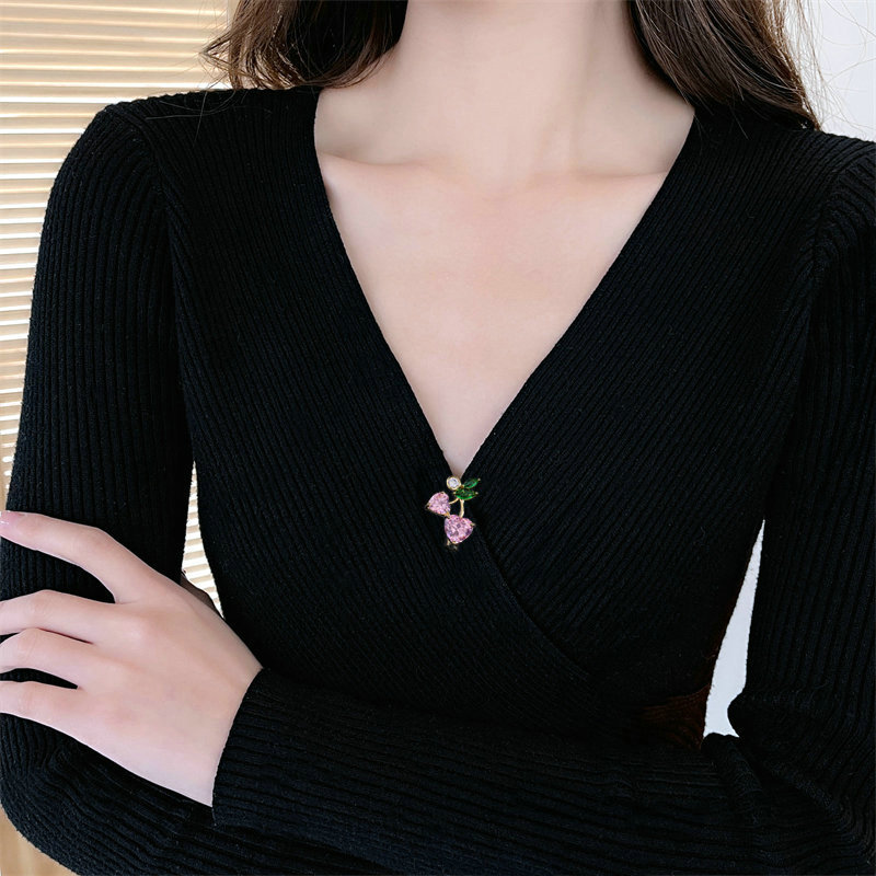 | nameOriginal | Niche Design Sense Clothing V-neck Cardigan Anti-slip Pin Small Brooch Corsage Pink Love-shaped Cherry Small Chest |