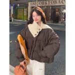 Niche design stitching knitted lapel down cotton-padded coat for women winter new small short cotton-padded coat for women