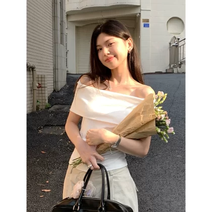 | nameOriginal | Niche one-shoulder summer slim-fitting top short-sleeved T-shirt |