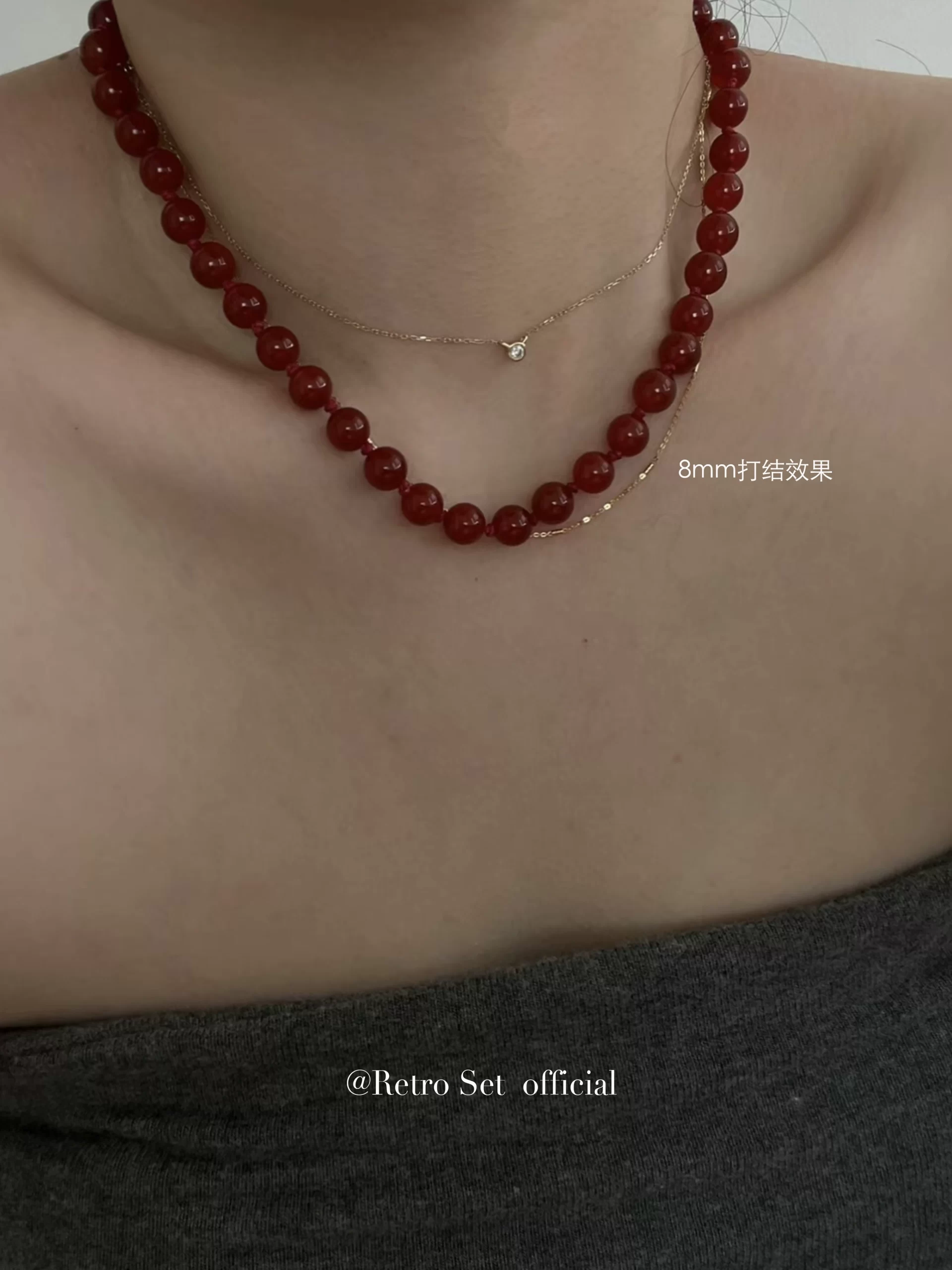 Niche red agate hand-beaded women's clavicle chain for Christmas