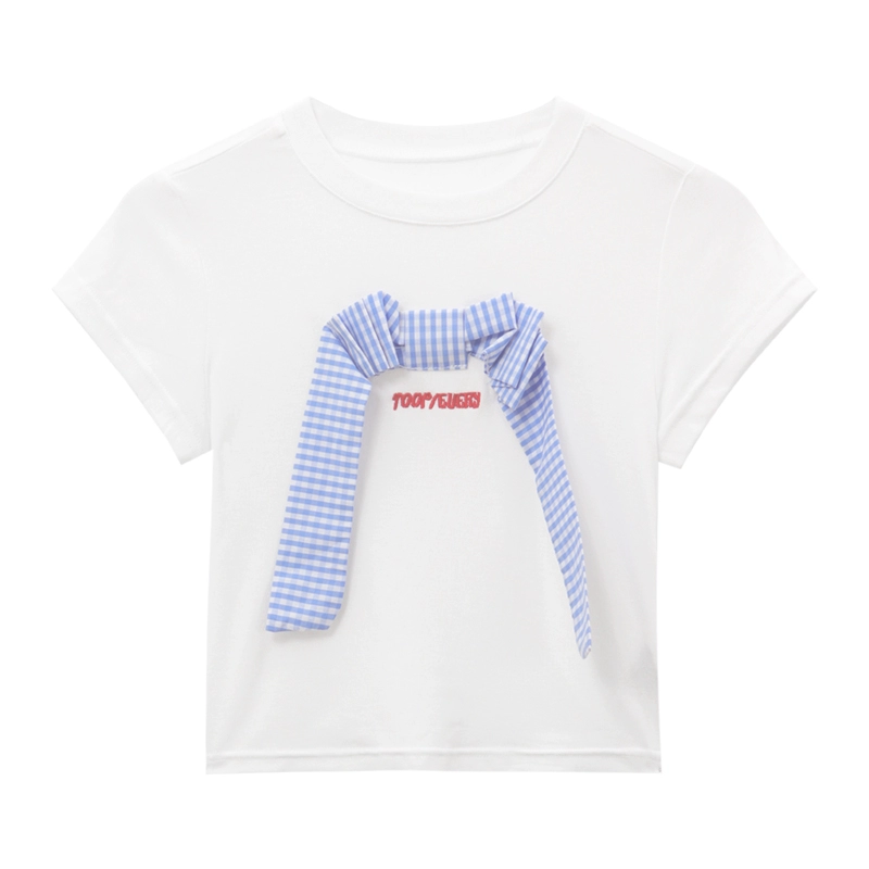 | nameOriginal | Niche three-dimensional short-sleeved summer top with plaid bow |