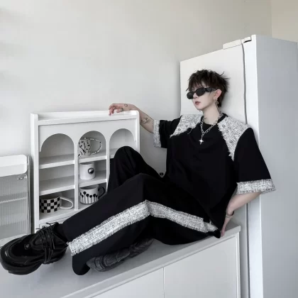 | nameOriginal | Niche woven splicing T-shirt Korean style wide-leg pants summer wear |