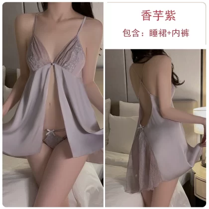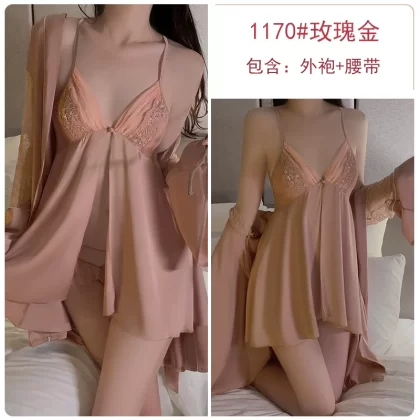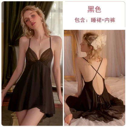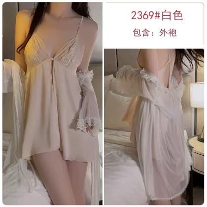 | nameOriginal | Nightgown for women ice silk satin thin sexy pajamas lace suit bathrobe fairy high-end nightgown home clothes |