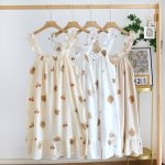 | nameOriginal | Nightgown Women's Summer Crepe Cotton Yarn Pure Cotton Thin Sling Pajamas Loose Midi Cartoon Long Dress Home Clothes |