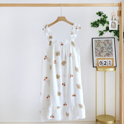 | nameOriginal | Nightgown Women's Summer Crepe Cotton Yarn Pure Cotton Thin Sling Pajamas Loose Midi Cartoon Long Dress Home Clothes |