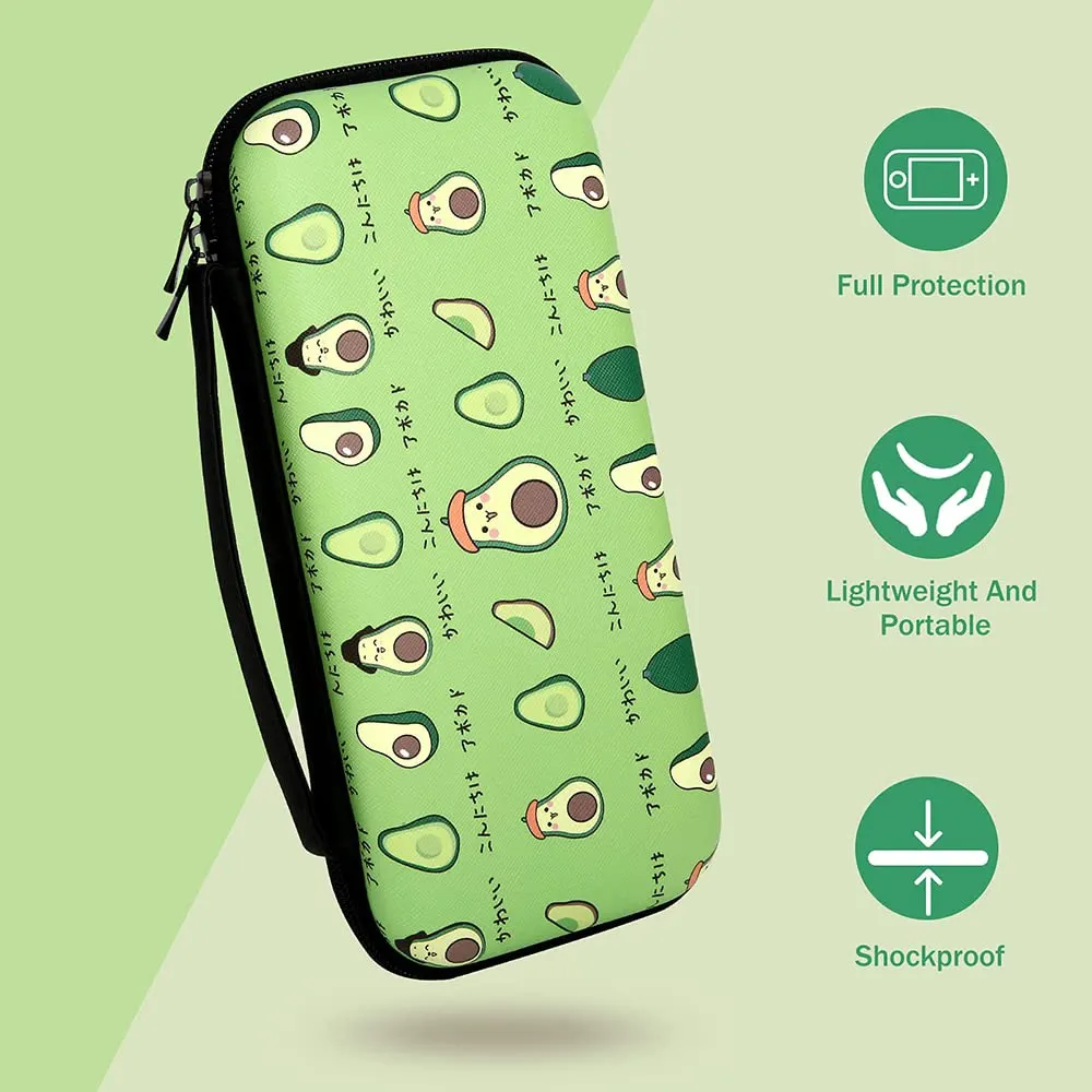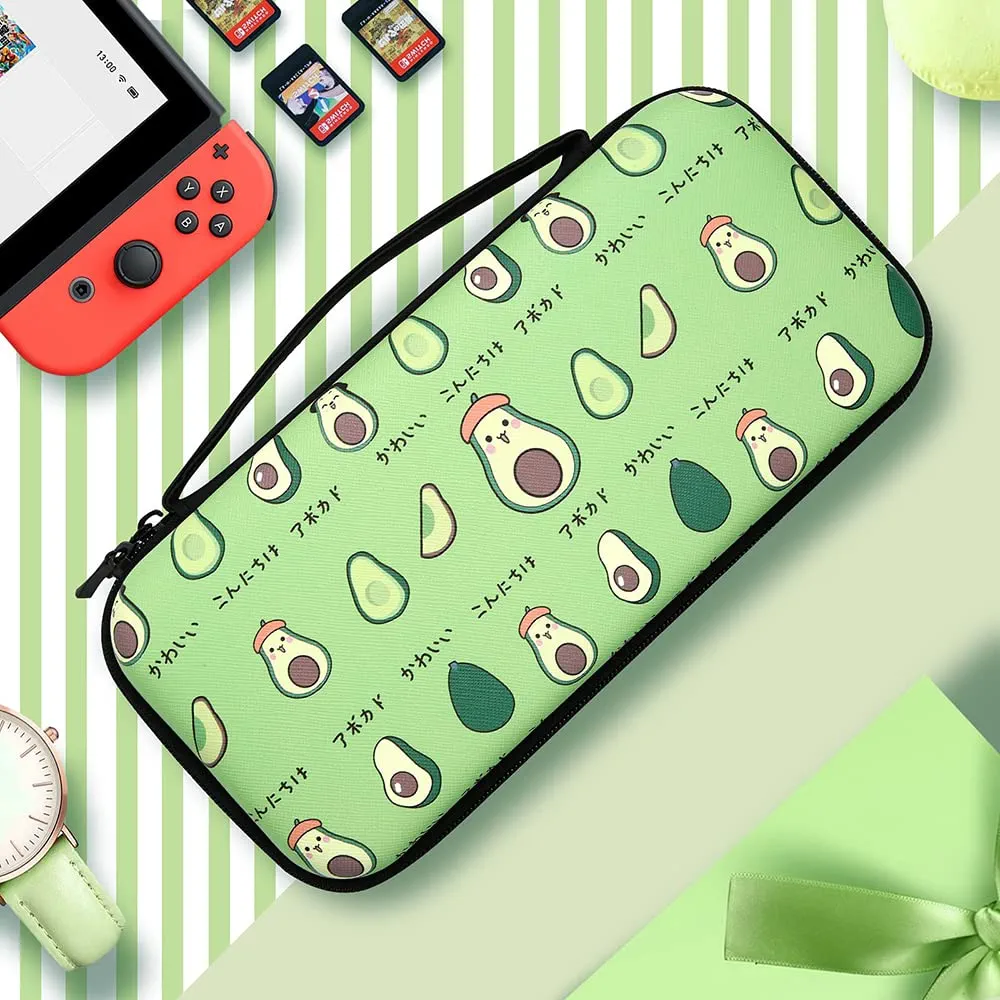 نقدم لك حقيبة التخزين لوحدة تحكم ألعاب نينتندو سويتش، الإكسسوار المثالي لأي لاعب أثناء التنقل! تتميز هذه الحقيبة الصلبة اللطيفة والغريبة بتصميم كرتوني ممتع من الأفوكادو الذي من المؤكد أنه سيبرز عن الآخرين. تم تصميم الحافظة لتكون محمولة ومناسبة للسفر، مما يجعل من السهل اصطحاب وحدة تحكم Nintendo Switch معك أينما ذهبت.