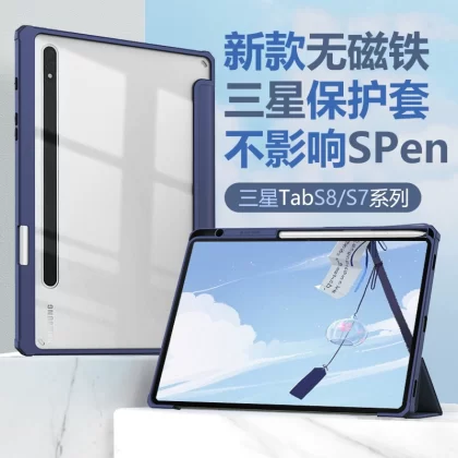 [بدون مغناطيس] مناسب لغطاء حماية الكمبيوتر اللوحي Samsung s7FE T870/T970 مع فتحة قلم s8 غير مغناطيسية بالإضافة إلى S7 الشفاف المضاد للانحناء 12.4 بوصة، غلاف صلب شامل مضاد للسقوط X700/X800 11 بوصة