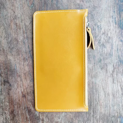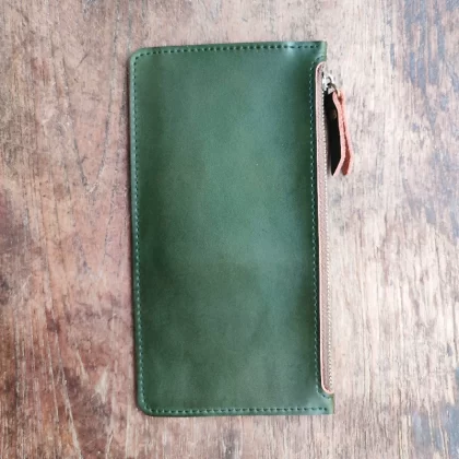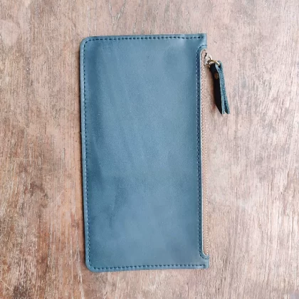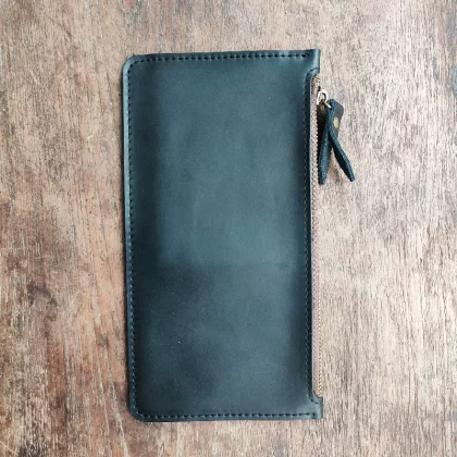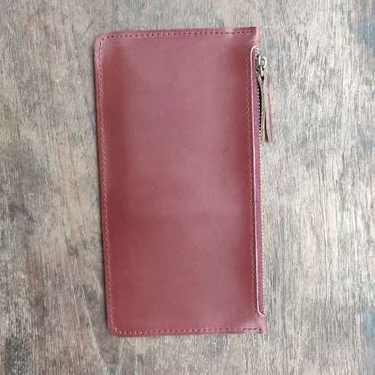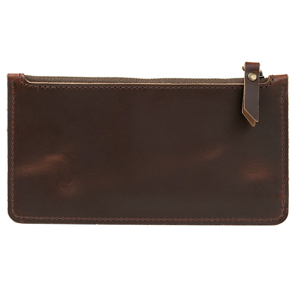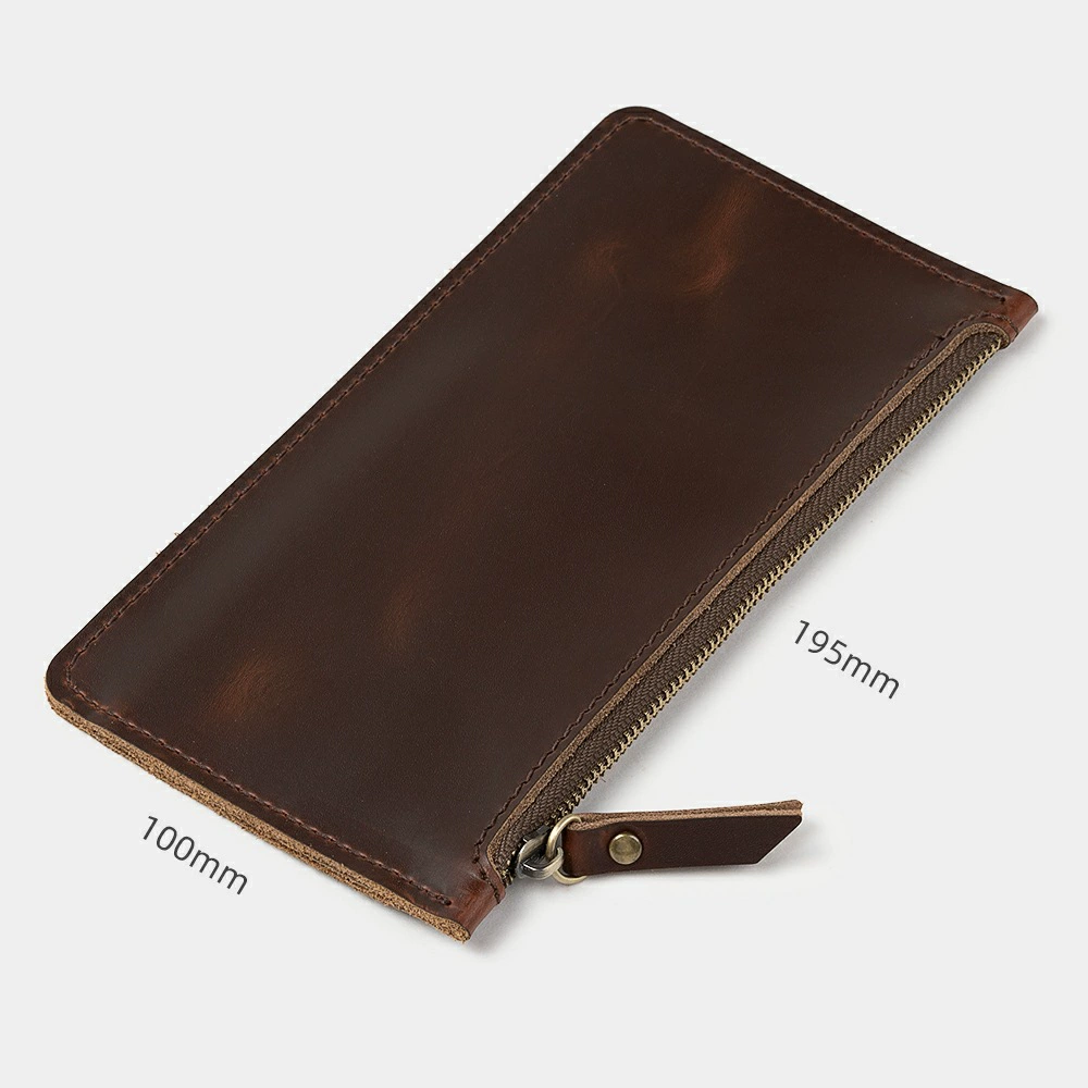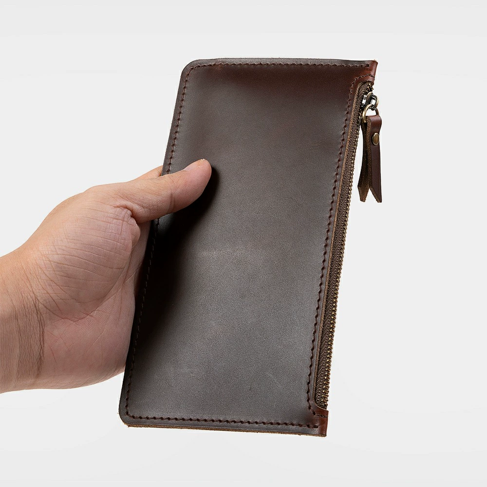 No name handmade original design crazy horse leather wallet unisex zipper long simple thin wallet trendy