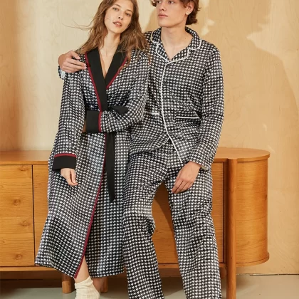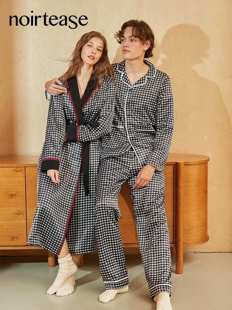 | nameOriginal | NoirTease autumn and winter thickened velvet houndstooth pajamas for men and women long-sleeved long nightgown home clothes |