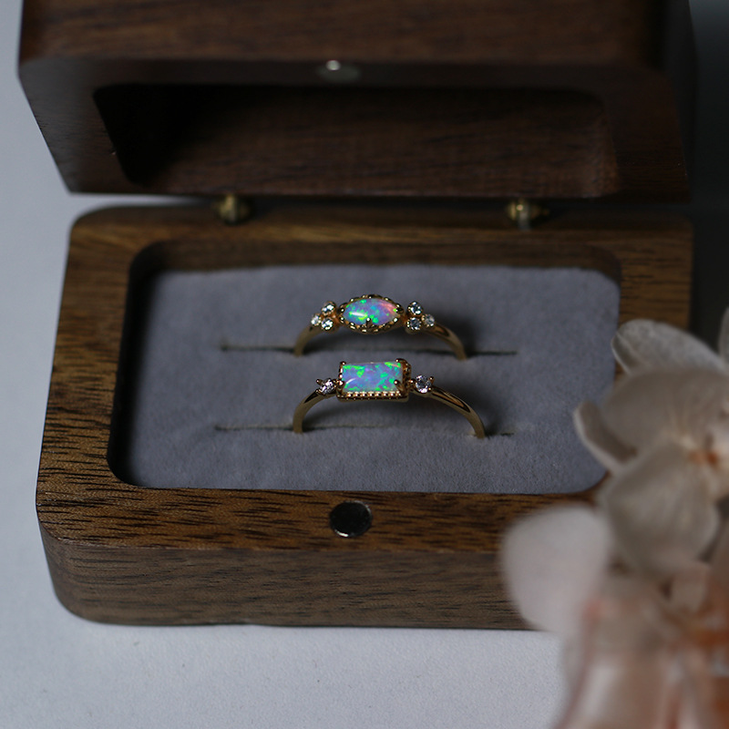nojess new ring necklace suit women's Japanese-style light jewelry opal ring 925 silver vintage clavicle chain