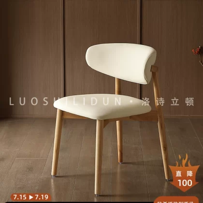 | nameOriginal | Nordic solid wood dining chair home light luxury modern designer dining table chair French medieval log desk back stool |