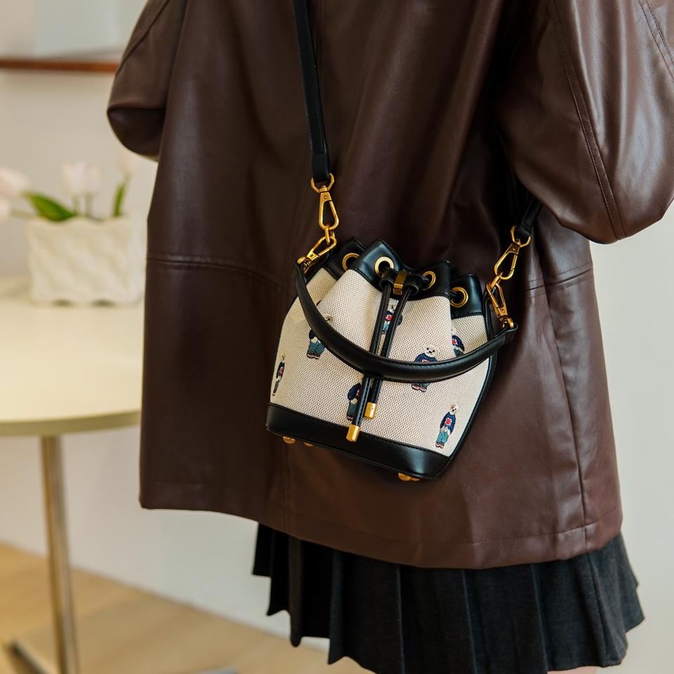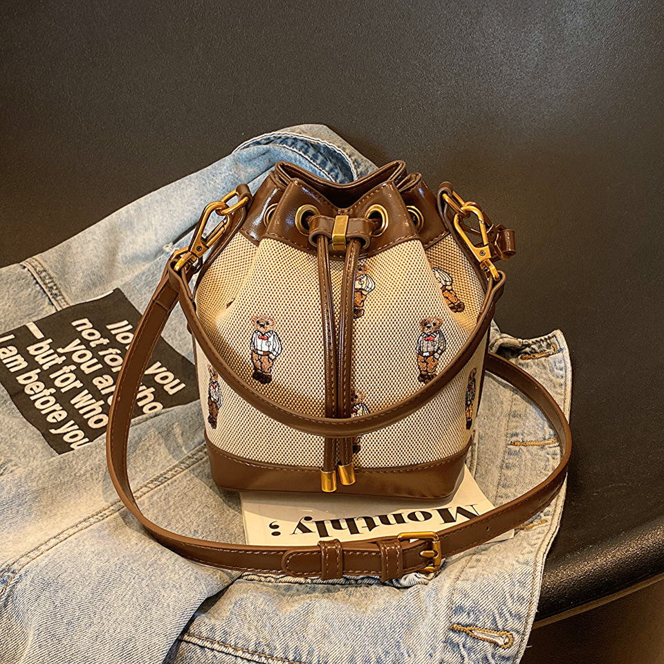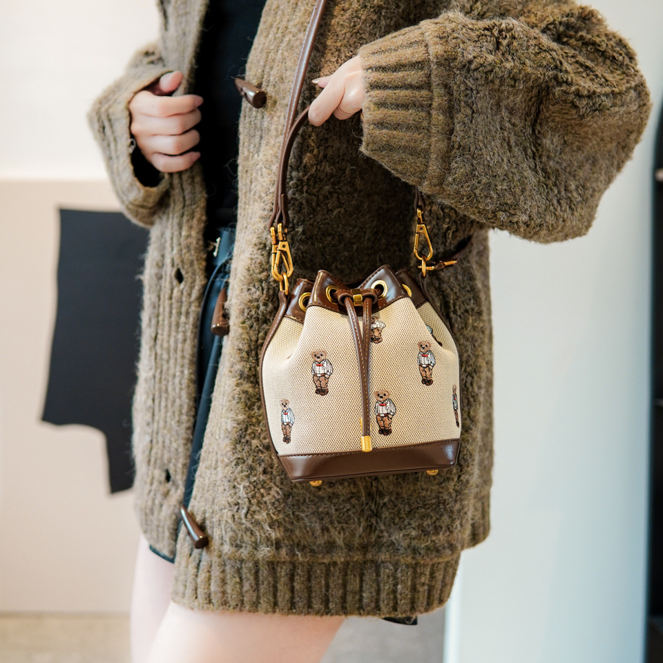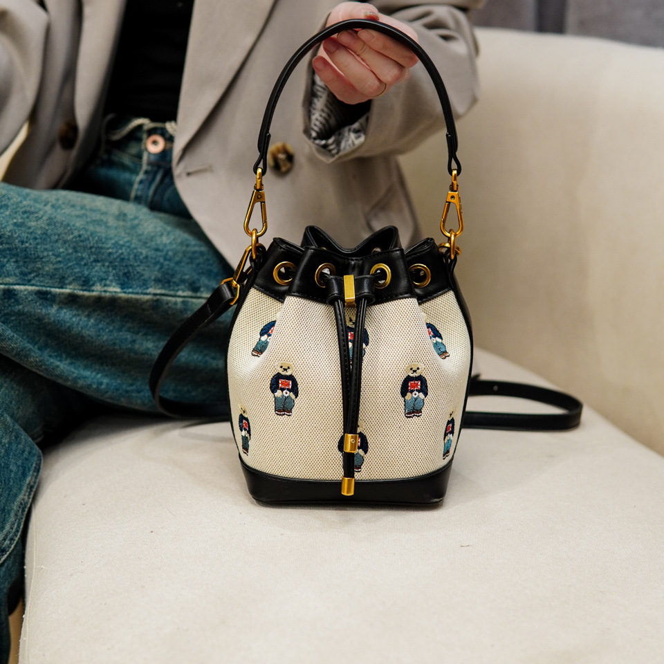 | nameOriginal | North Bag genuine goods Canvas with PU Embroidery Cute Bear Portable Bucket Bag Women's 2024 New Shoulder Crossbody Bag |