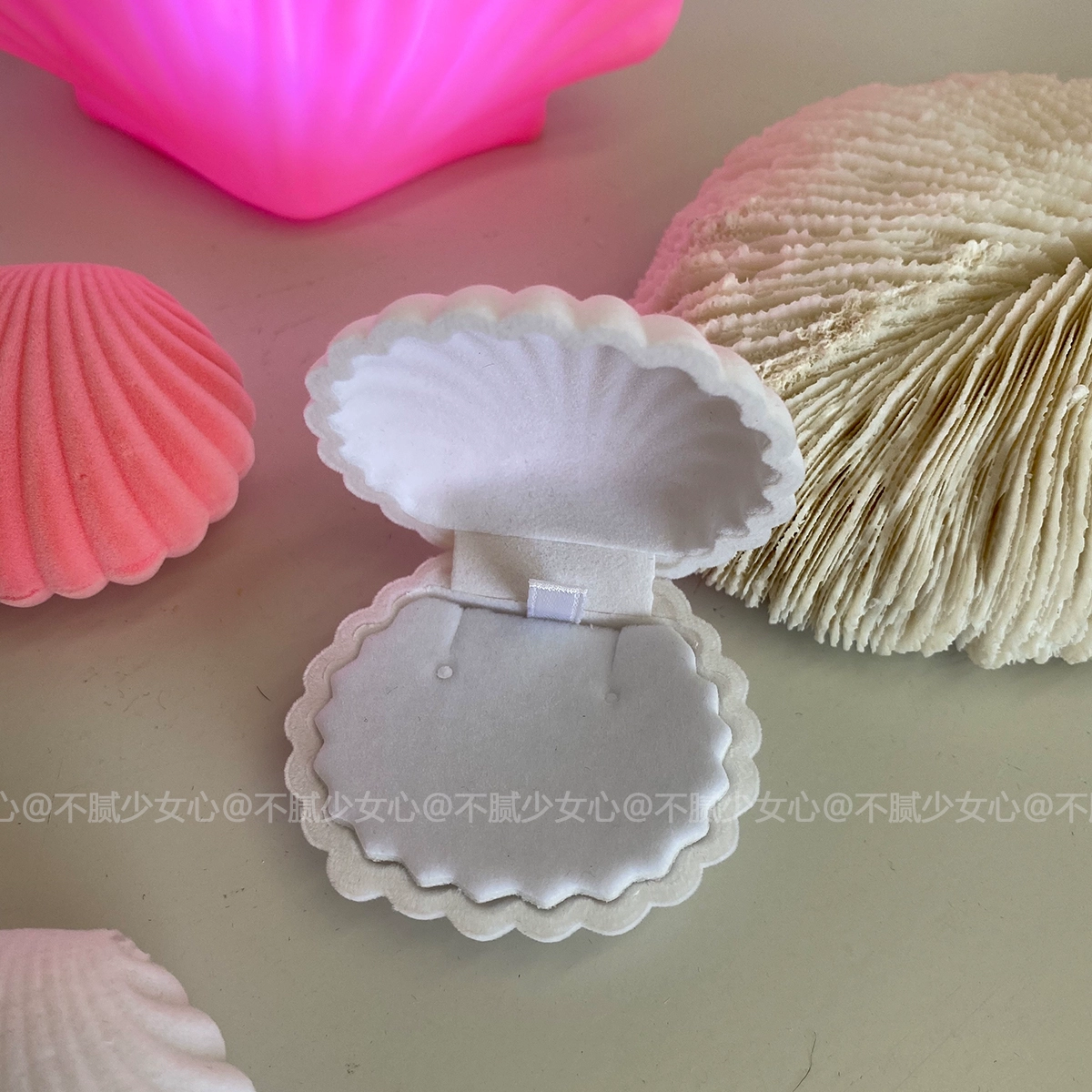 | nameOriginal | Not tired of girly heart * Retro flocked shell clam box ring box necklace earrings jewelry storage box |