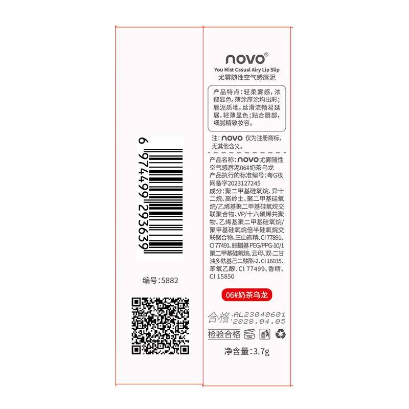 NOVO milk mist air lip mud matte soft waxy silky lip cheek dual-use waterproof not easy to fade student cheap lip glaze