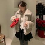 الآن 2023 شتاء جديد كوريا الجنوبية Dongdaemun th * Bar * صافي فضفاض بلون التلبيب معطف الفرو واحدة الصدر للنساء