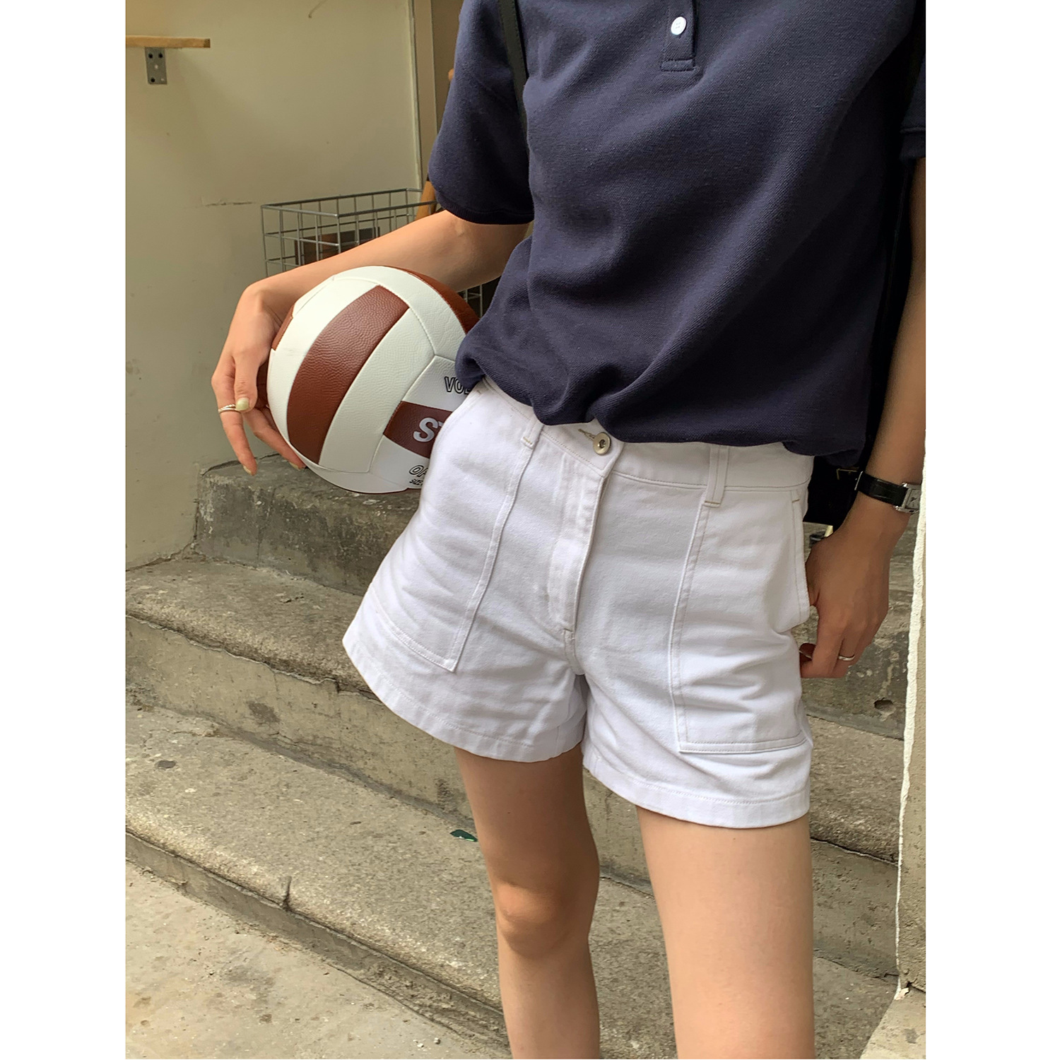 | nameOriginal | Now 2024 summer new South Korea designer simple commuter high waist A- line version pocket Denim shorts |