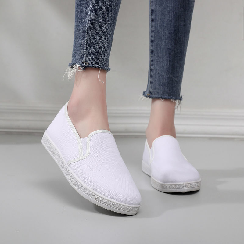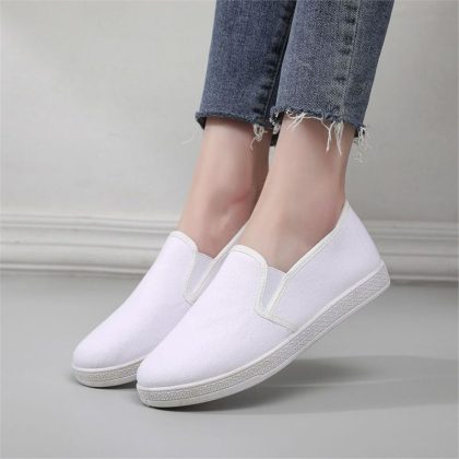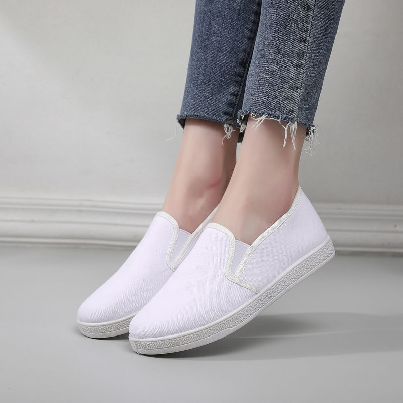 أحذية الممرضات النسائية البيضاء المسطحة غير القابلة للانزلاق أحذية كاجوال خفيفة الوزن ومريحة أحذية التجميل أحذية بيضاء نعل ناعم أحذية قماش بكين القديمة
