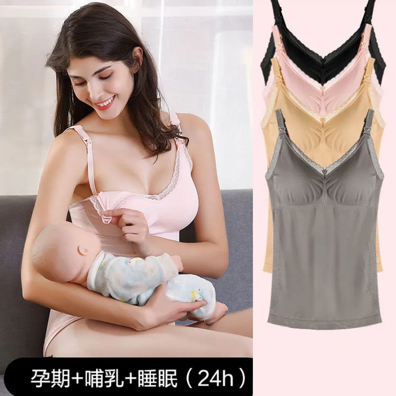 Nursing sling wear-free bra thin spring cotton top nursing clothes vest postpartum spring and summer pajamas for women