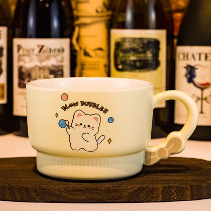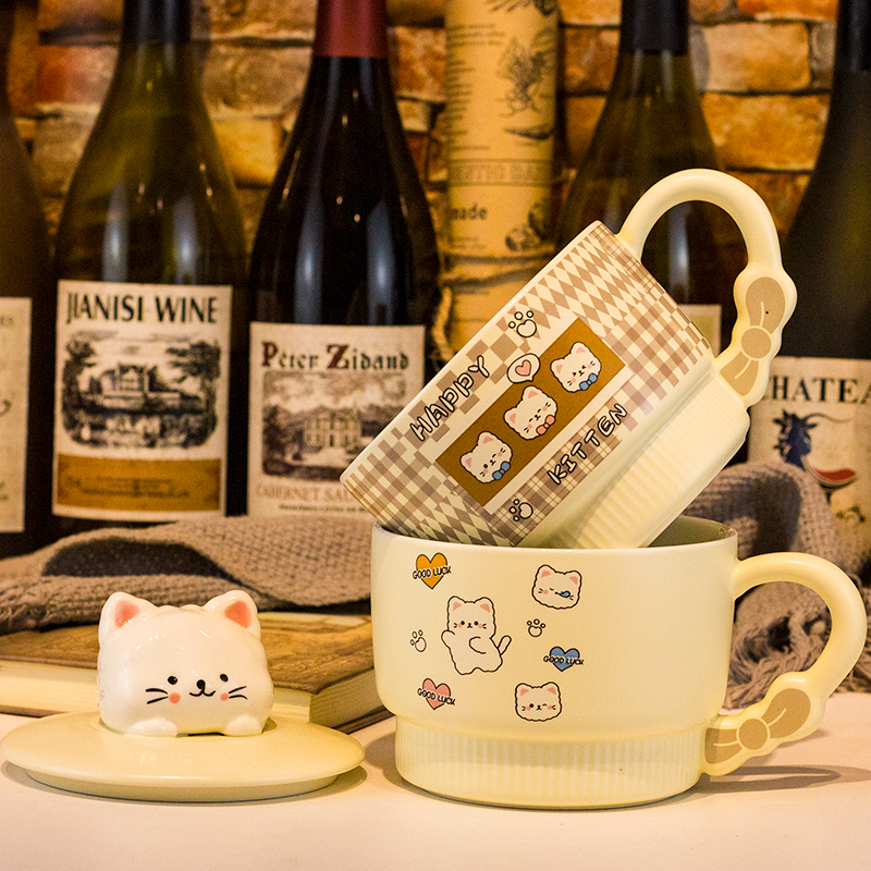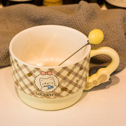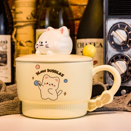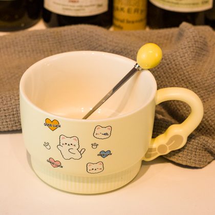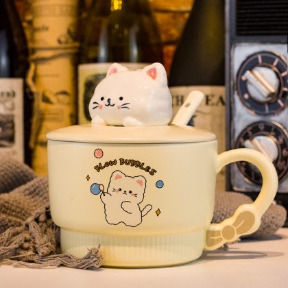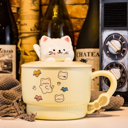 | nameOriginal | # Oatmeal Bowl Breakfast Bowl with Spoon Lid Household Mug Large Capacity Large Size Ceramic Yogurt Candy Cat Mier |