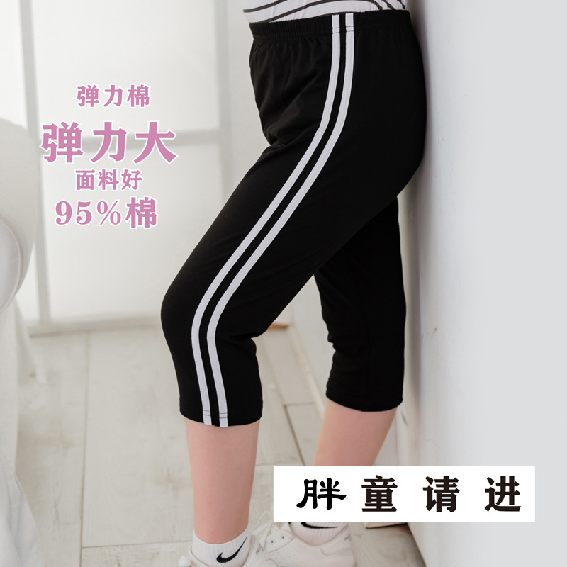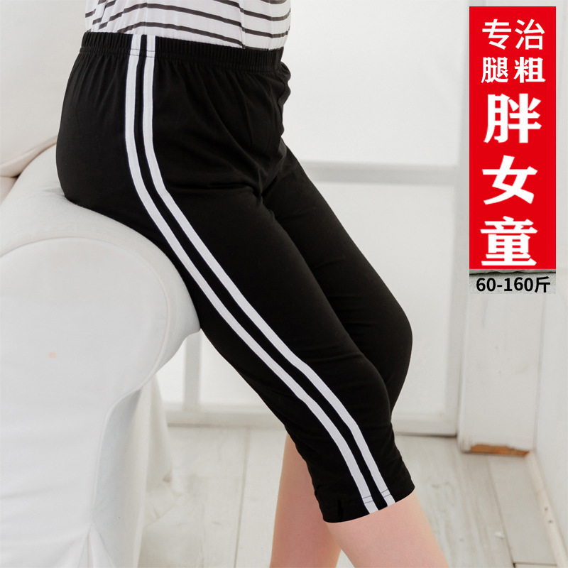 Obesity girls' leggings summer thin big children's cropped pants stretch plus fat increase thick legs 8 points anti-mosquito pants