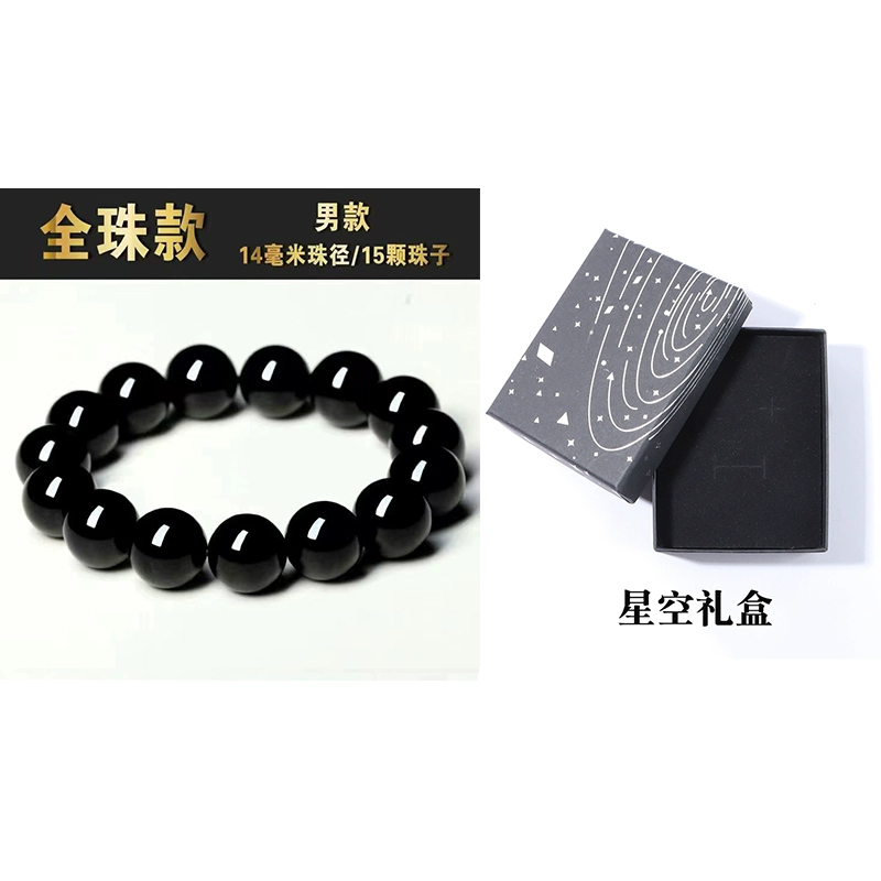 | nameOriginal | Obsidian beads black gold single circle men's bracelet |