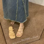 | nameOriginal | ocean one gentle cross strap thick heel slippers vacation thong toe korean version seaside daily half slippers summer 40 size |