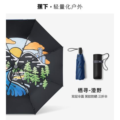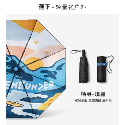 OD59 wholesale Qixun sun umbrella female double-layer umbrella surface black plastic umbrella UV-proof rain-proof dual-use trendy cool sun umbrella
