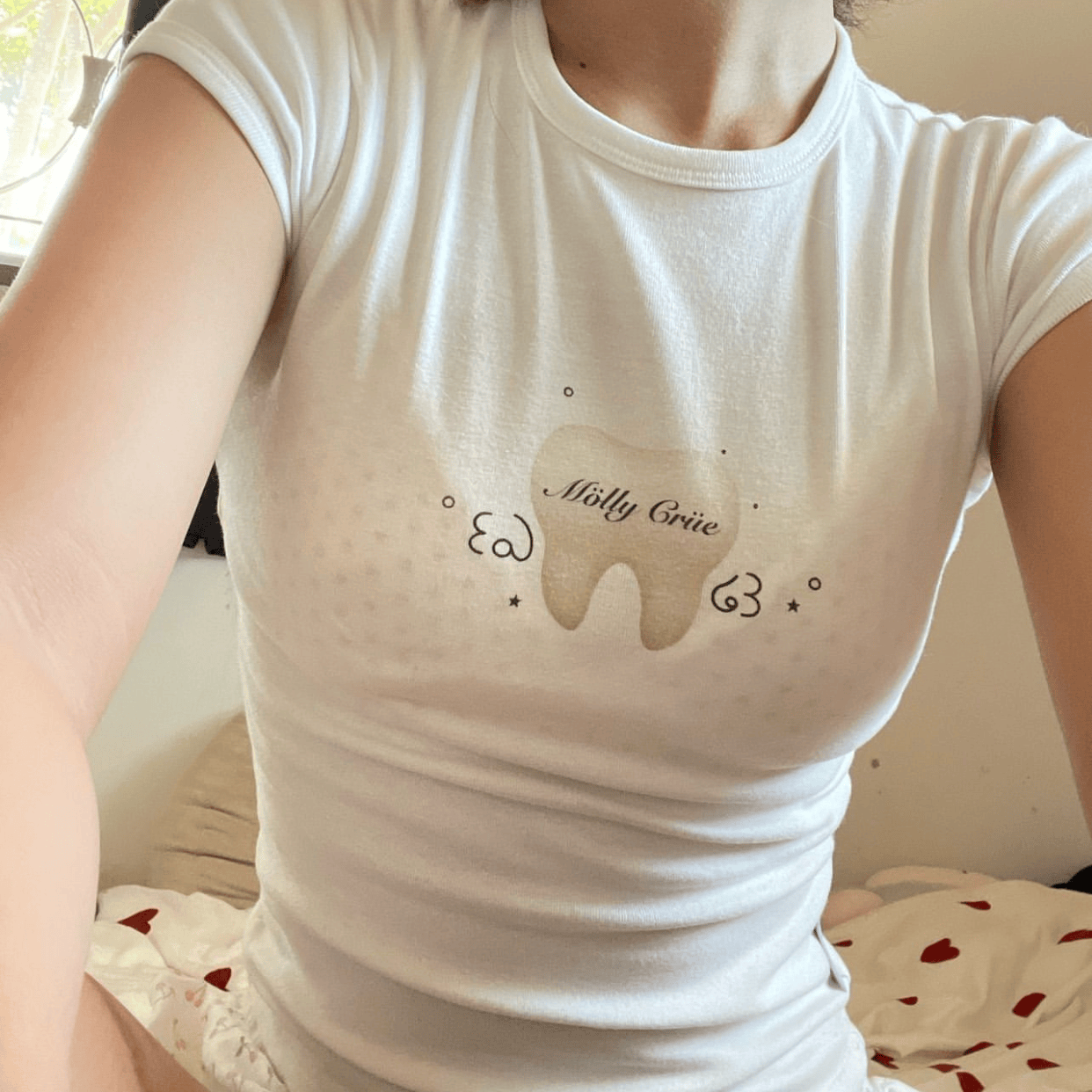 ODD RDCHS slim short-sleeved crew neck top cartoon