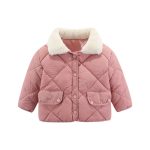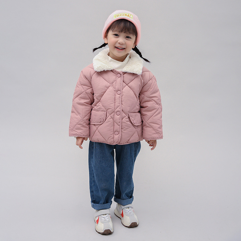 Off-season Korean-style Loose Cotton-padded Jacket Children's Rhombic Plaid Cotton-padded Jacket Thickened Warm Wool Collar Jacket for Babies