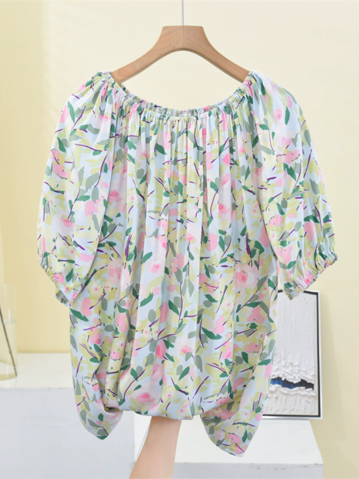 | nameOriginal | Off-shoulder bateau collar, loose casual bat sleeves cotton silk |
