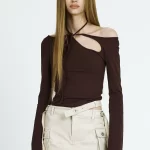 | nameOriginal | Off-shoulder bateau collar retro slim long-sleeved top with halter neck |