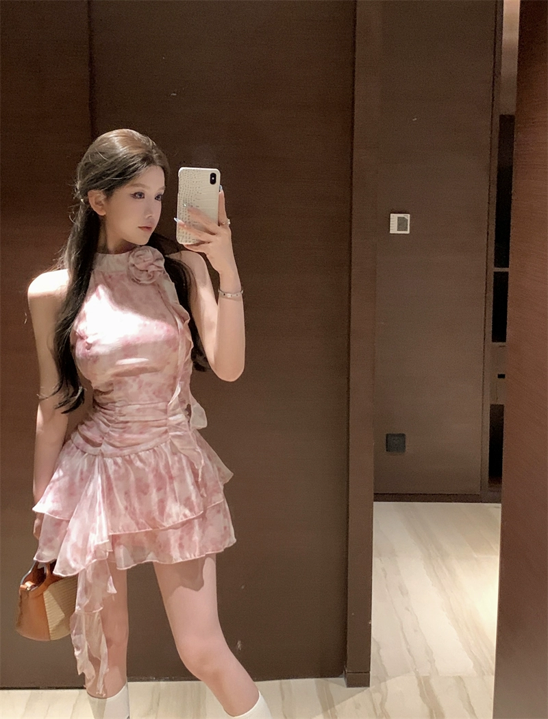 | nameOriginal | Off-shoulder pink smudged summer sexy tank top with halter neck |