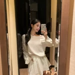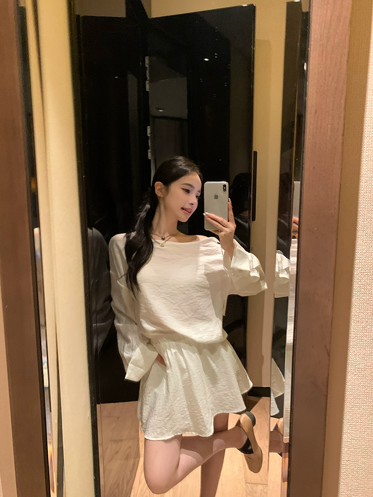 Off-shoulder relaxed linen two-piece long-sleeved T-shirt