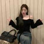 | nameOriginal | Off-shoulder ruffled boat neck sweet and spicy long-sleeved sweater |