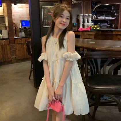 | nameOriginal | Off-shoulder sweet and discreet slimming short-sleeved dress |