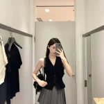 Off-shoulder V-neck slim coat sleeveless knitted vest