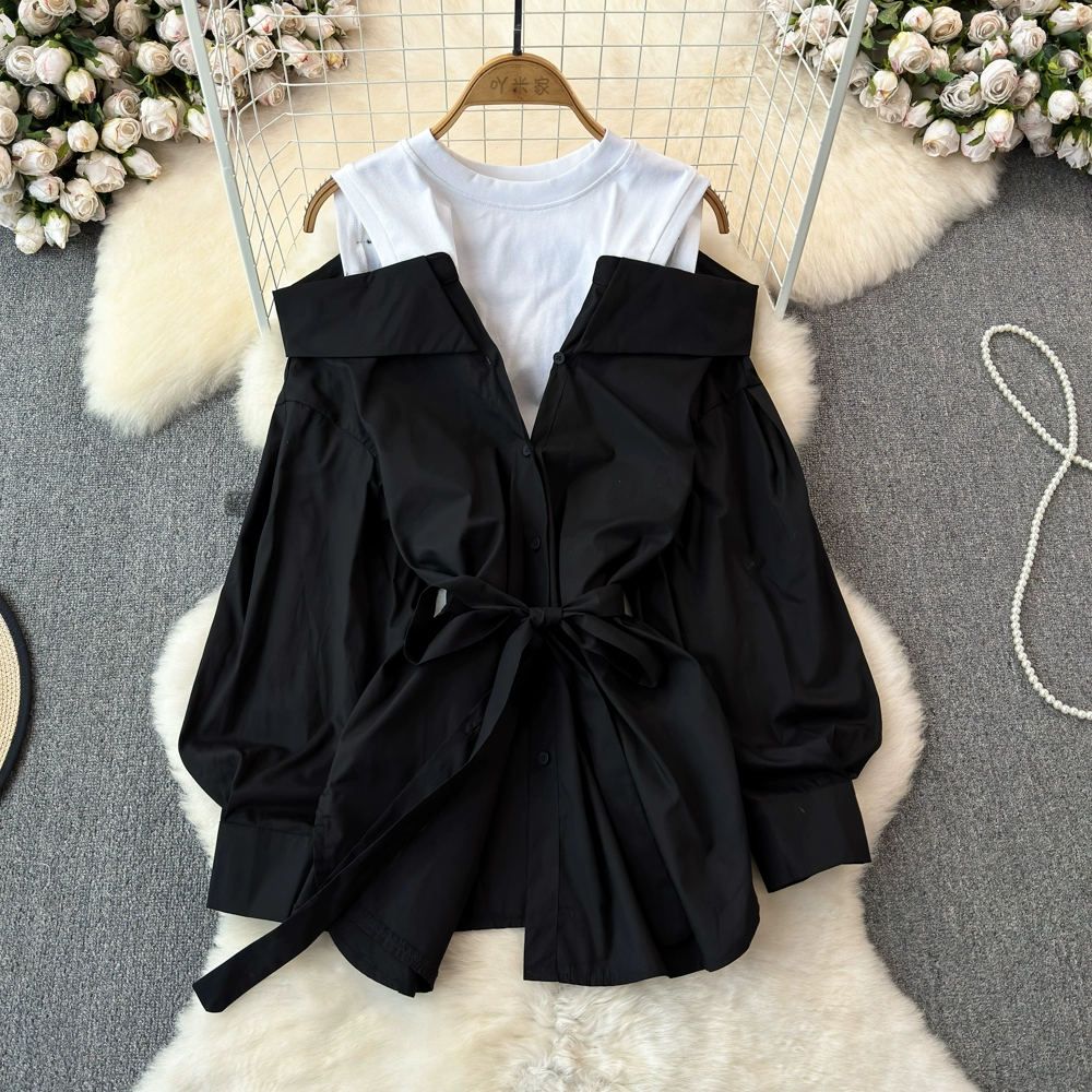 خارج الكتف الأنيق الربط المزيف من قطعتين بأكمام طويلة